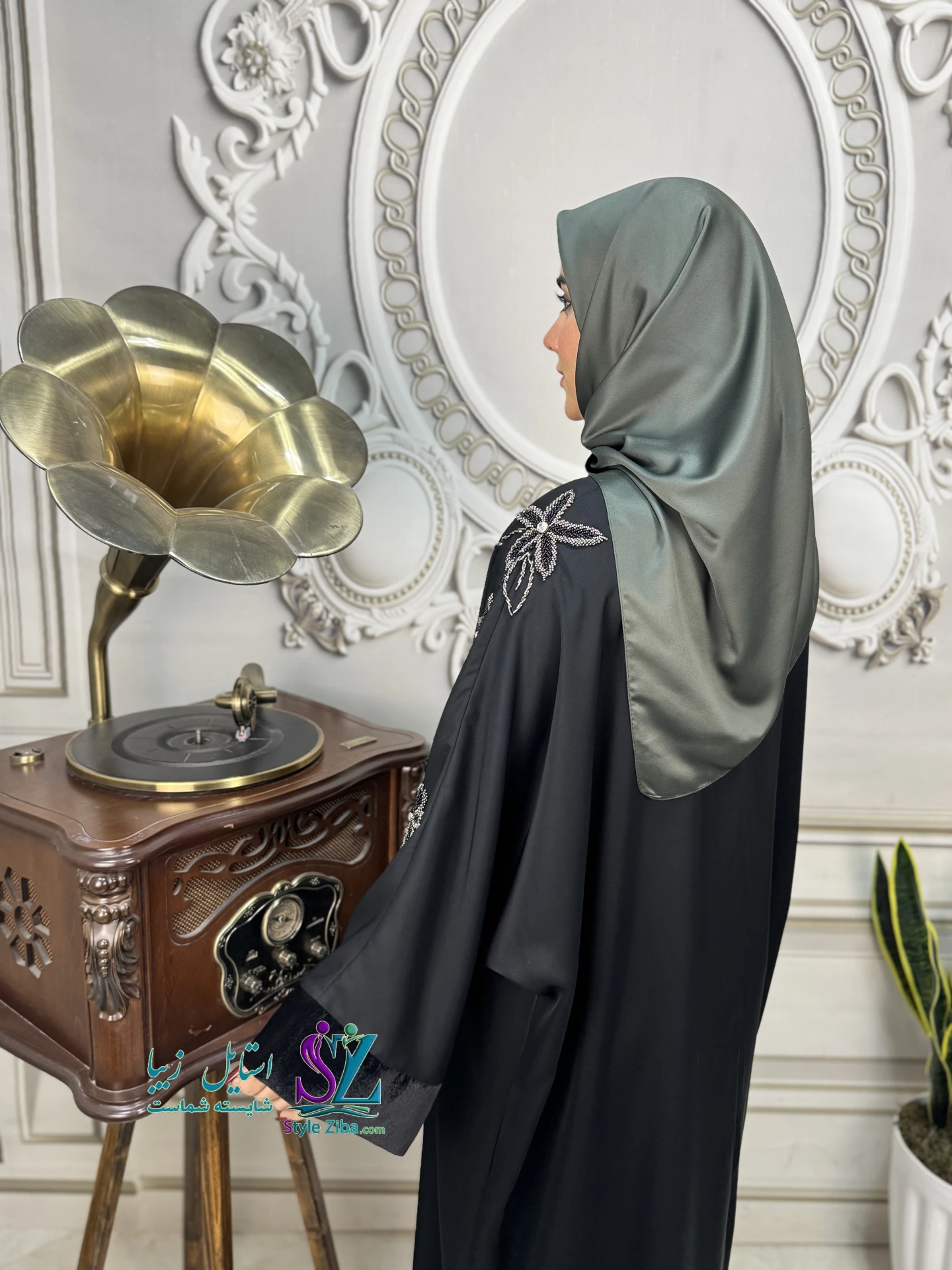 گلهای جواهردوزی شده در کنار سرآستین مخمل، به این عبا مجلسی جلوهای لطیف و چشمگیر میدهد؛ جزئیاتی که ساده نیستند اما اغراقآمیز هم نیستند. اگر به دنبال خرید عبا مجلسی هستید که در عین سادگی، خاص دیده شود، عبا زنانه زوفا انتخابی است که بهخوبی در ذهن میماند.