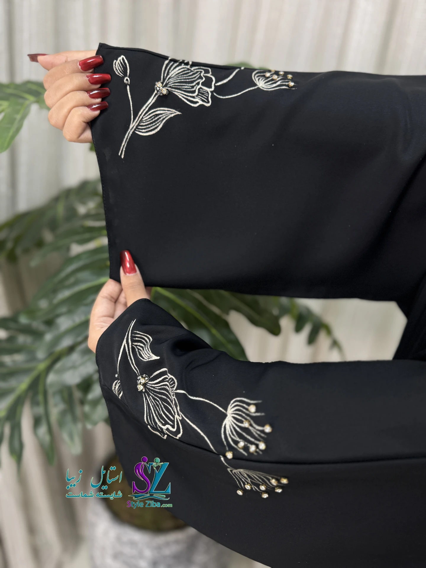 جزئیات نقاشی گل همراه با نگینهای برجسته، این عبا مجلسی را از یک عبا مشکی ساده جدا میکند و آن را به گزینهای شیک برای مهمانیها و مراسم رسمی تبدیل میکند. اگر به دنبال خرید عبا مجلسی متفاوت، ظریف و چشمگیر هستید، عبا زنانه مهسا دقیقاً همان انتخابی است که دیده میشود.