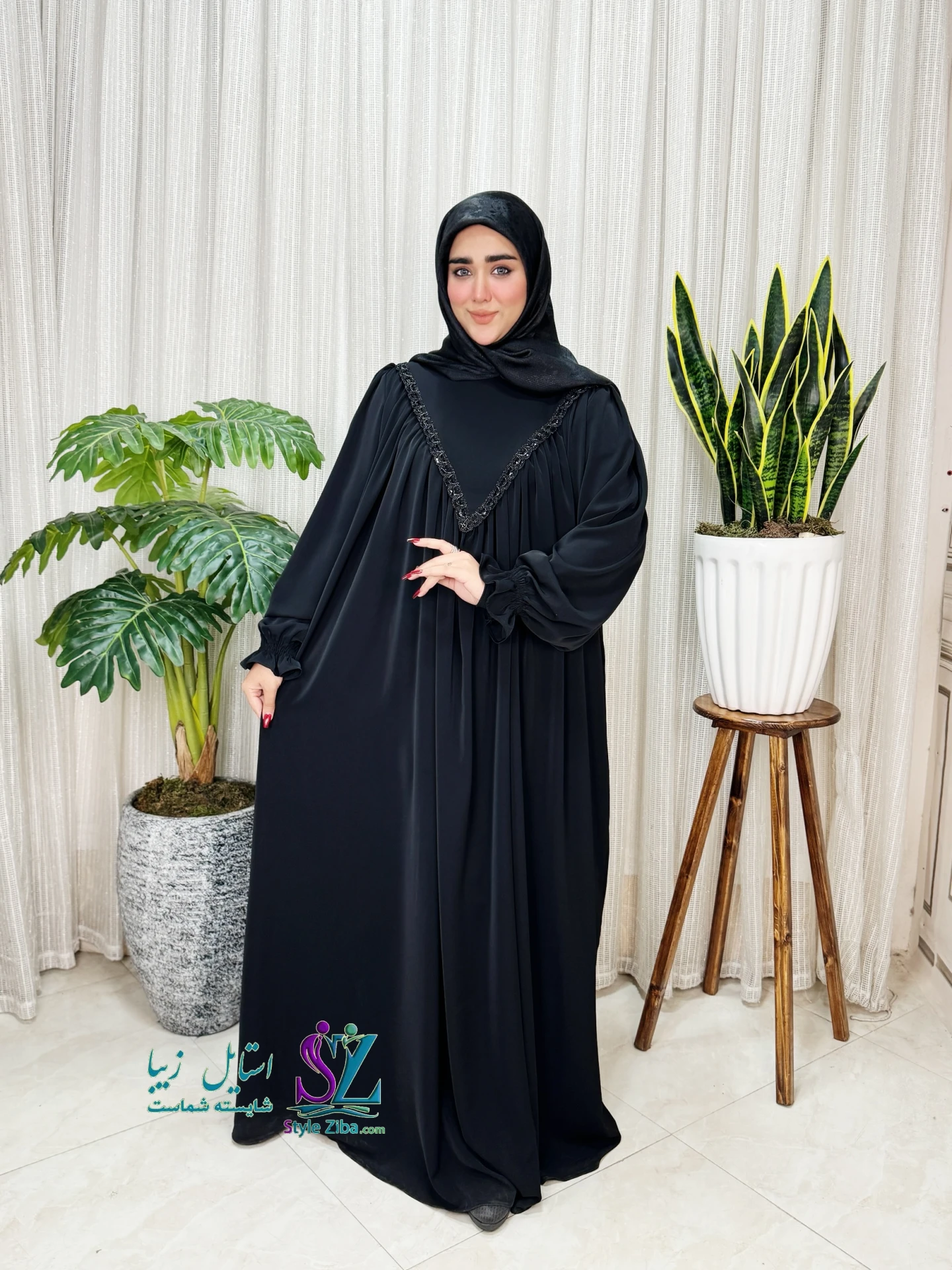 عبا مجلسی زنانه آذرگل از جنس سوپر الیزه مشکی با کیفیت بالا طراحی شده تا هم ایستایی شیک داشته باشد و هم حس راحتی را در طول استفاده حفظ کند.